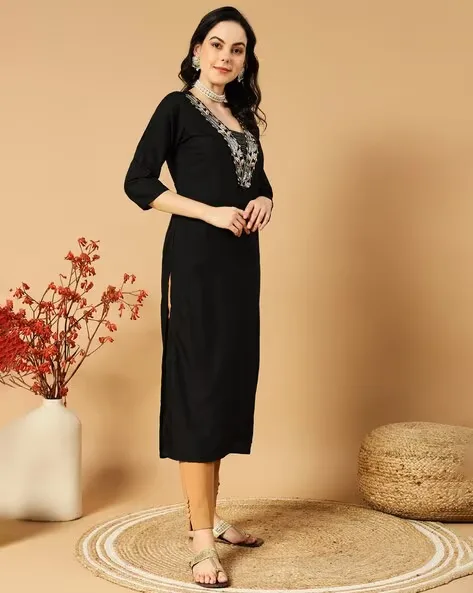 Women Embroidered Straight Kurta