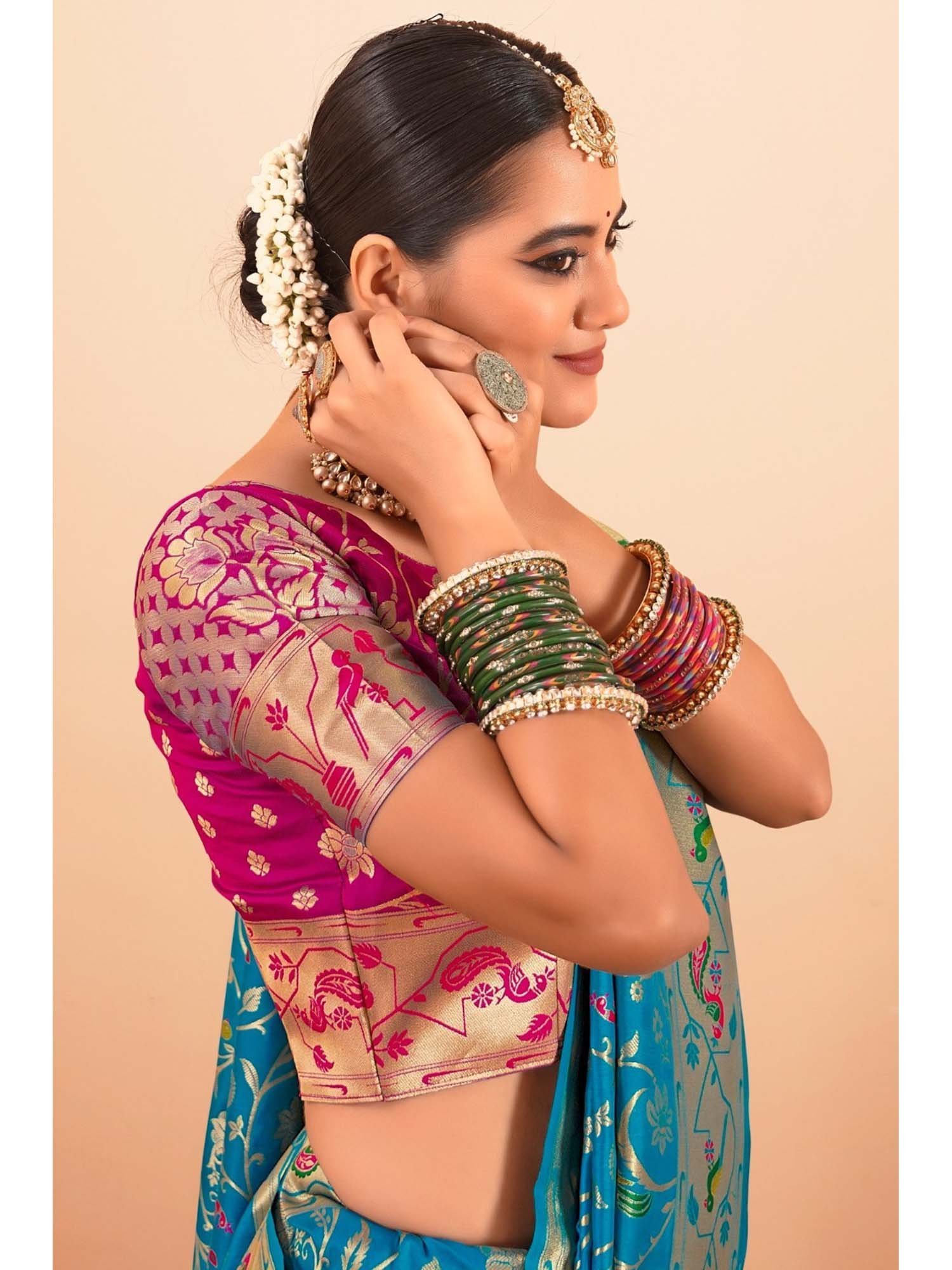 Women Green Paithani Woven Saree with Unstitched Blouse