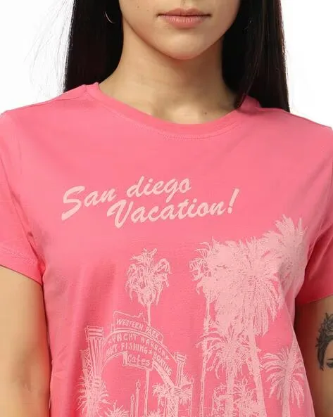 Women San Diego Vacation Printed Regular Fit Crew-Neck T-Shirt