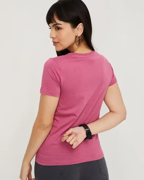 Women Typographic Print Regular Fit Round-Neck T-Shirt